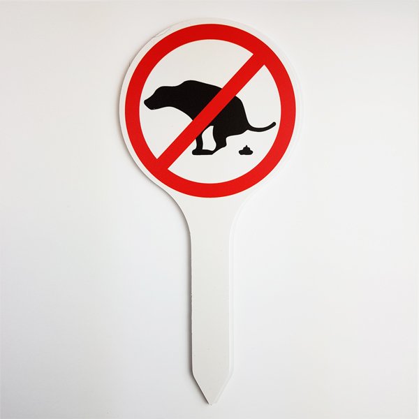 Plastikinis į žemę įsmeigiamas ženklas „draudžiama šikti”